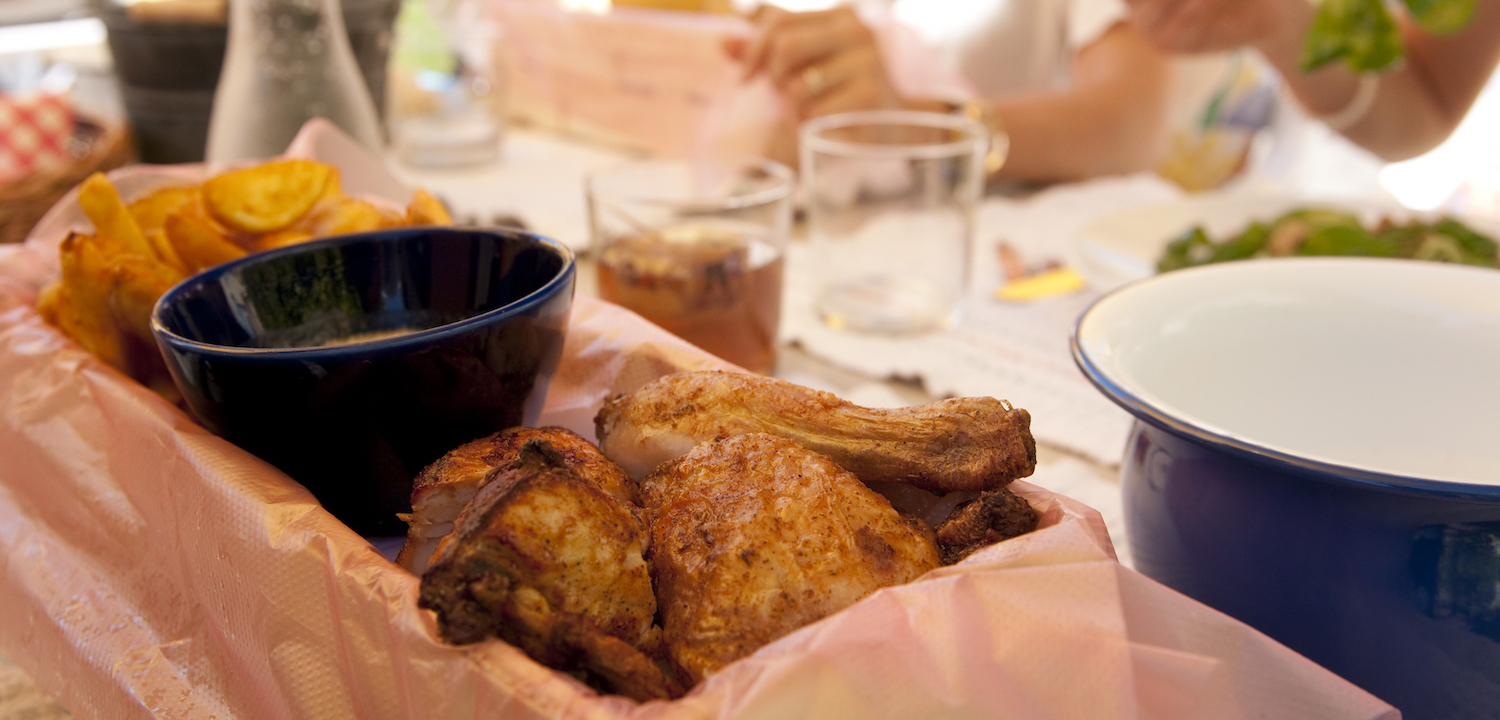 Bestellen Sie Pouletflügeli oder das Original Abgerupfte Huhn (Pouletstücke) im Chörbli für Fr. 25.00